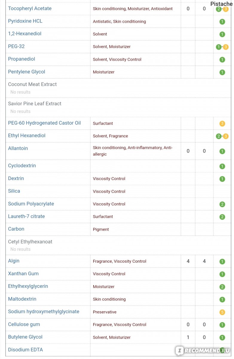 Аллантоин -- смягчает, интенсивно увлажняет кожу, способствует сужению пор и нормализации выработки кожного сала, обладает противовоспалительными свойствами, успокаивает раздраженную кожу.