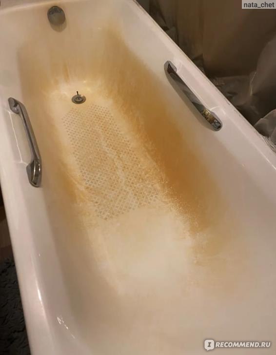 Так вот, потеки ржавчины побледнели сразу, а потом в районе черного налета началось что-то невообразимое. Шипение и выделение большого количества грязной пены, что именно там происходило я не видела опять же из-за пены.