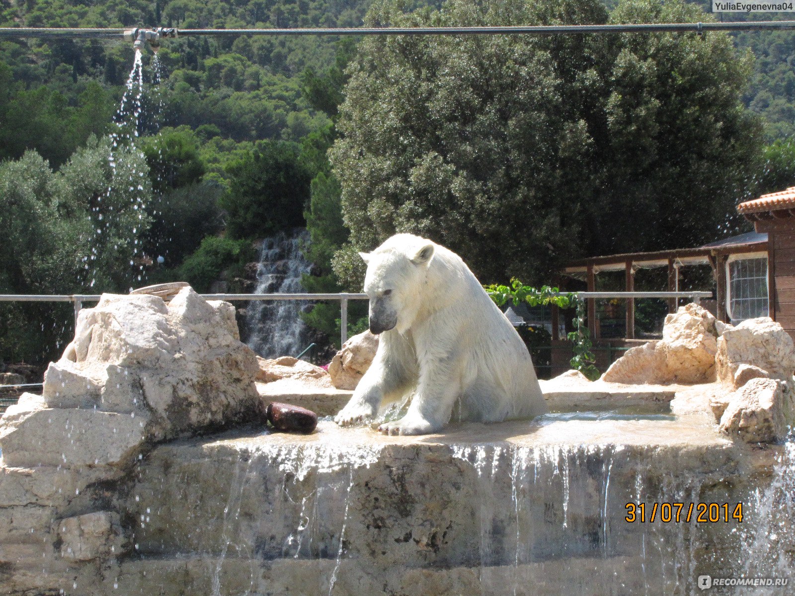 Зоопарк и парк аттракционов в летнее время работает с 9.00 до 17.00. (в зимние с 10.00 до 15.00). При въезде вы оплачиваете билеты за людей (не за автомобиль) дети до 4 лет бесплатно. Мы оплатили 44 евро за всех. (2 взрослых + 1 ребенок 2 лет). Также вам сразу выдают билеты на разовое посещение троллейбуса посмотреть обезьян, рептилий, попугаев! (это после посещения парка на авто, далее парк пешком 2 часть).