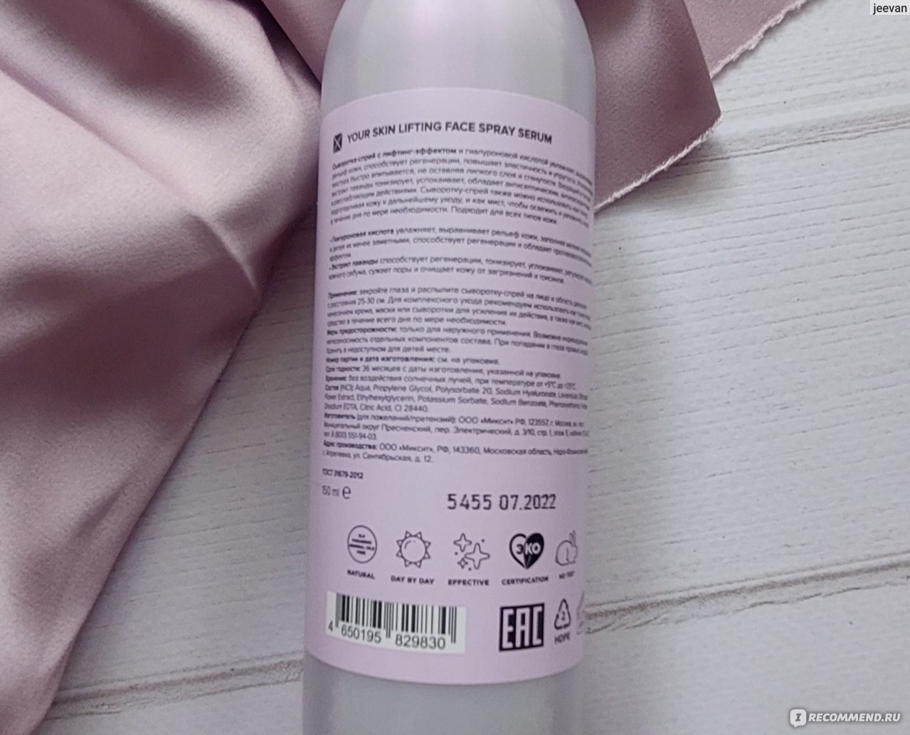 Естественно, от применения спрея не будет выраженного лифтинг-эффекта, так как все должно быть в комплексе, но как дополнительное увлажнение после умывания или масок, мне очень понравился.