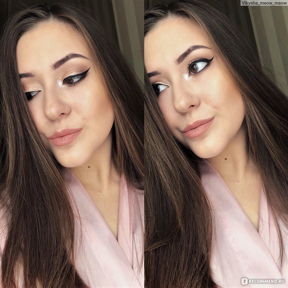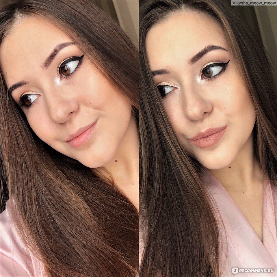 До/после в полном макияже.Поймать оттенок камере на все 100% не получилось. Камера всё-равно показывает цвета более пудрово-розовые, а на деле карандаш более коричнево-бежевый.