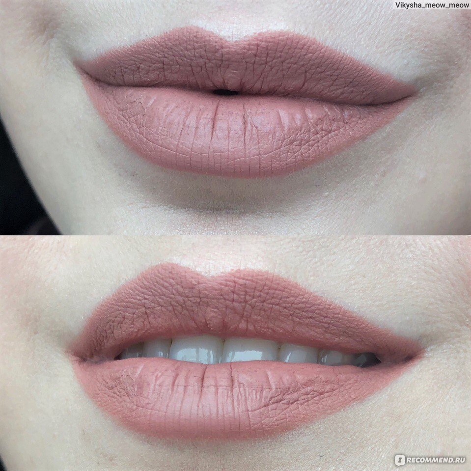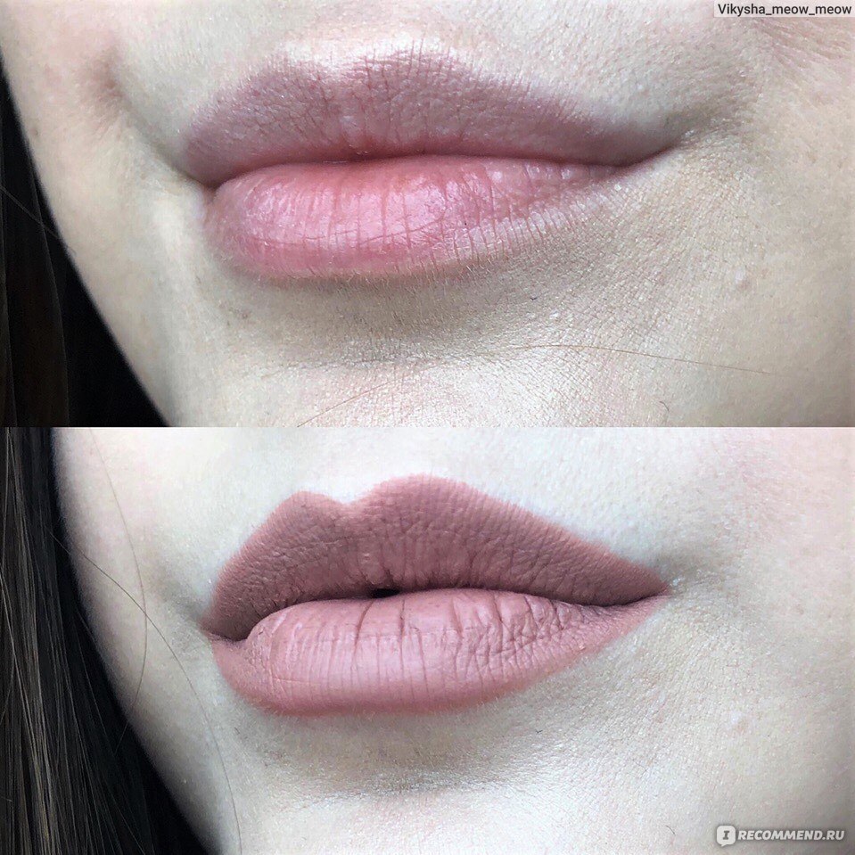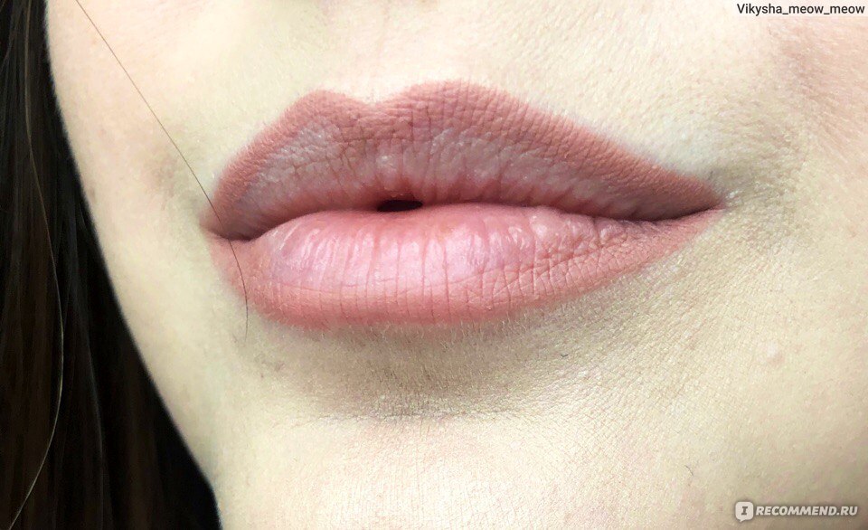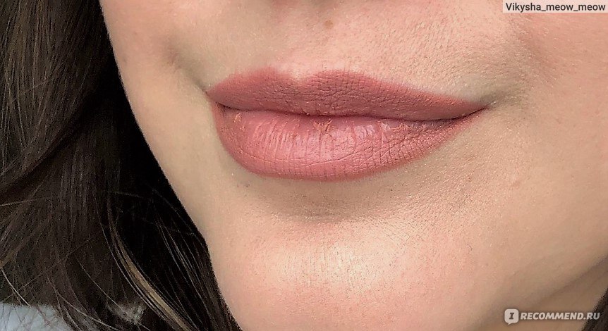 - Наносится равномерно и красиво, если губы не имеют шелушений. Если же есть недостатки, особенно серьёзные, то лучше сначала привести губы в порядок. Поэтому я всегда стараюсь заранее губы увлажнить и отшелушить.