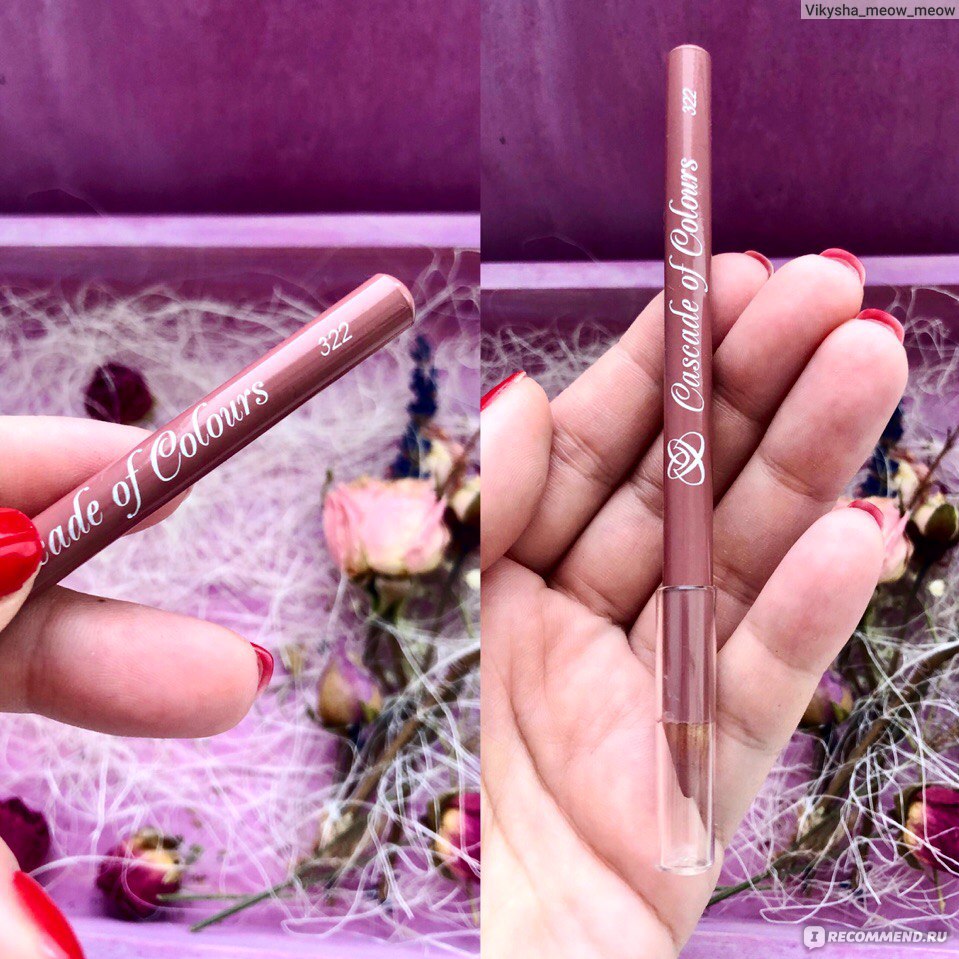 История поиска этого карандаша началась давно...Как-то случайно я наткнулась в инстаграме на макияж одного визажиста, в котором влюбилась в оттенок губ! Именно под этим видео было описание всех использованных продуктов в макияже. И там был он. Этот карандаш №322. Такой оттенок я хотела уже очень давно и ни в одном бренде не могла найти тот самый "свой" цвет.Прошло время, и я заметила в том же инстаграме, что одна студия в моём городе открыла магазин и поставляет эти карандаши Cascade of colors! Девушки из Воронежа, если будет нужно, поделюсь контактами)