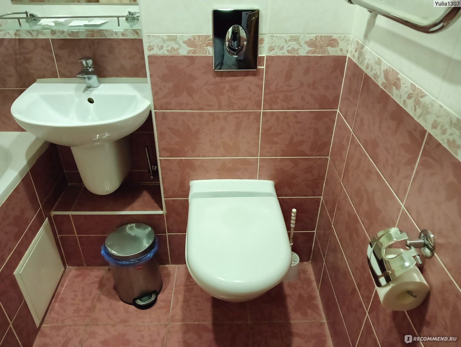 Ванная комната обычная – унитаз, ванная, раковина. Видно, что ремонт сделан относительно недавно.