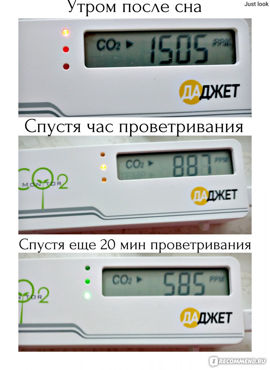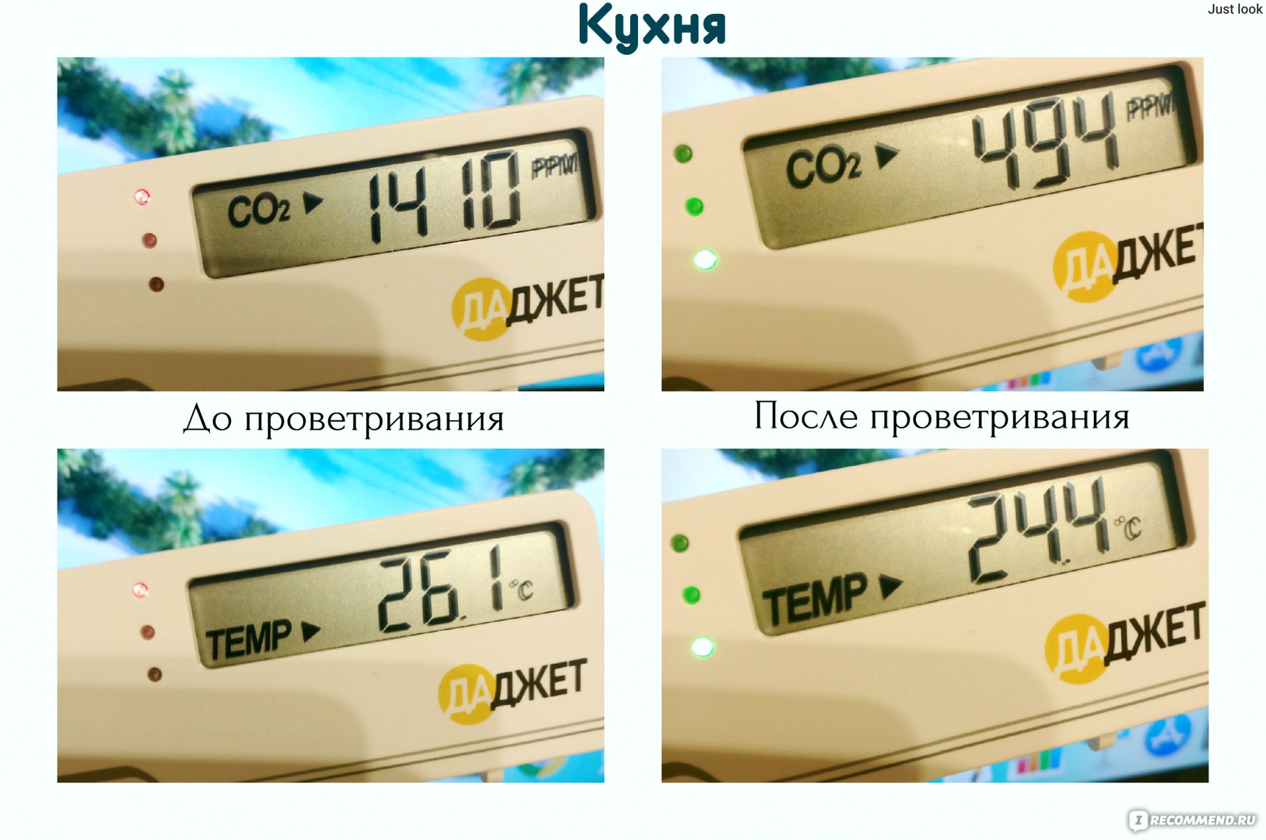Детектор углекислого газа оказался очень полезным прибором. Теперь я не забываю проветривать и детектор подсказывает, когда это нужно сделать. Я раньше думала, что если спать ночью с открытой комнатной дверью, то свежего воздуха будет достаточно, но как выяснилось, на утро кислорода скапливается много. Эксперимент с закрытыми дверями на кухне показал и то, что один человек способен выделить много CO2 и поэтому проветривать нужно чаще.
