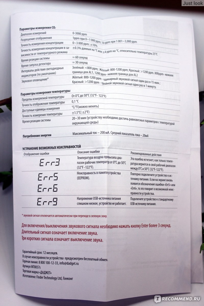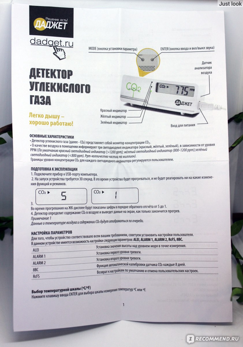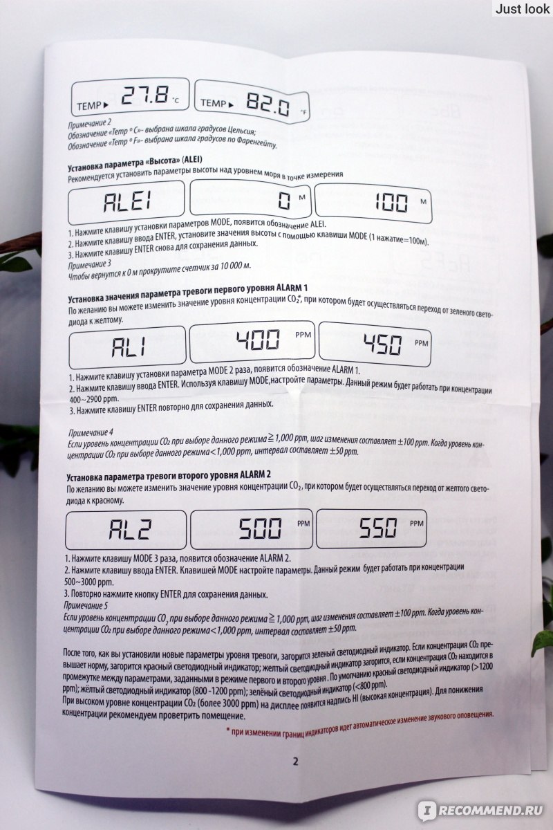 - Звуковой сигнал дает знать о превышении концентрации CO2;
