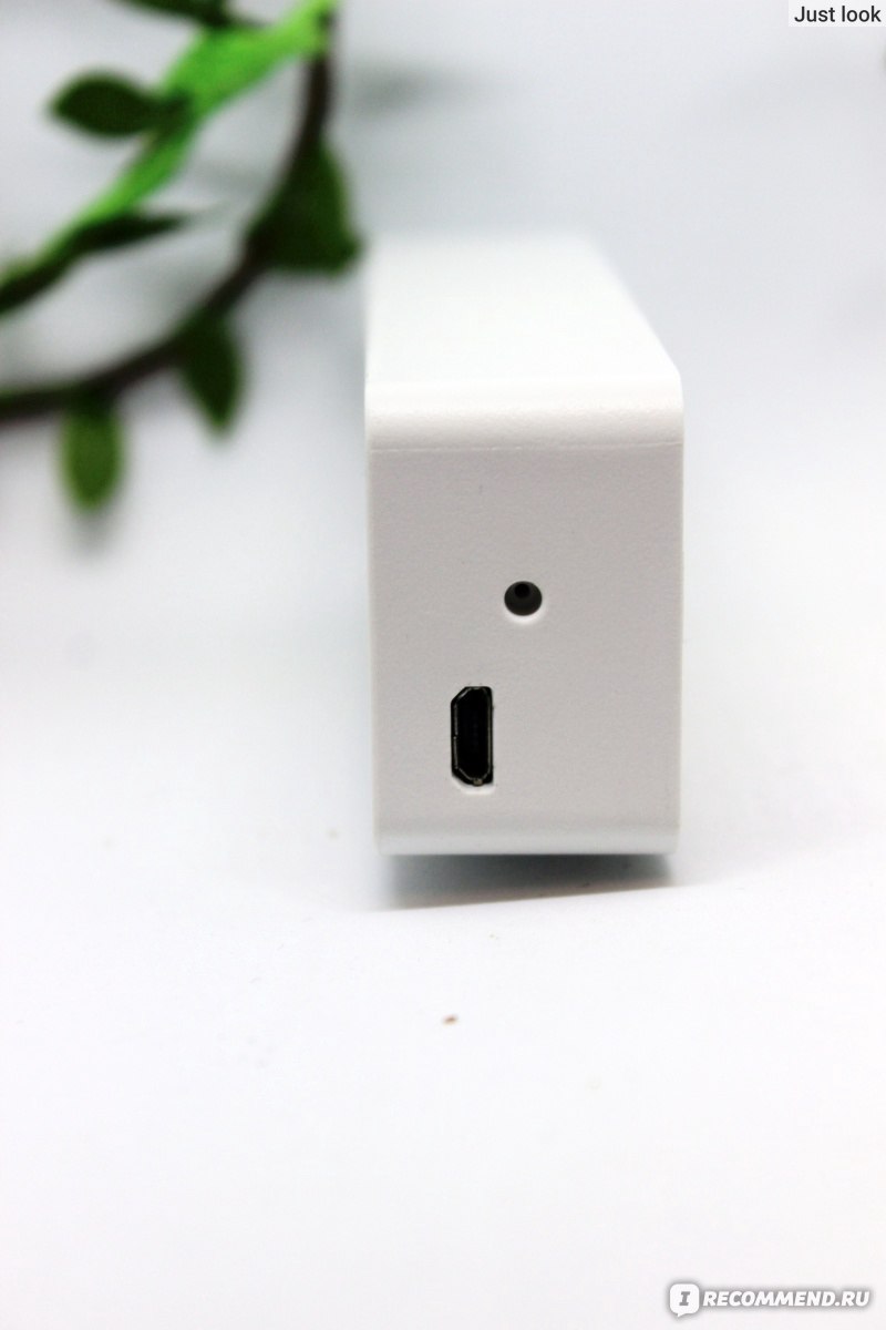 USB-шнур вставляется справа. Сразу над ним располагается датчик анализа воздуха.