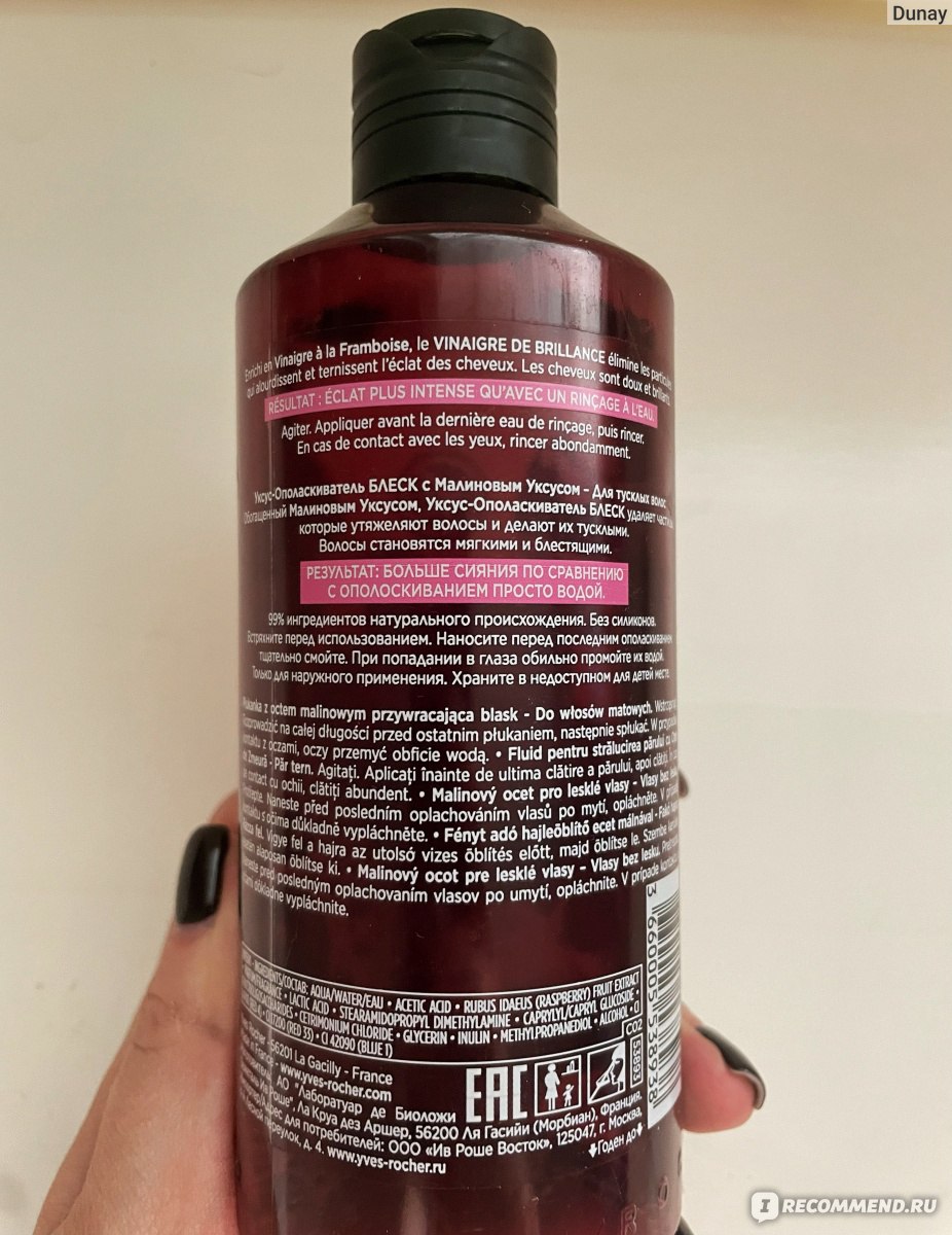 И нашла я уксус -ополаскиватель блеск с малиновым уксусом. YVES ROCHER couleur vinaigre de brillance .