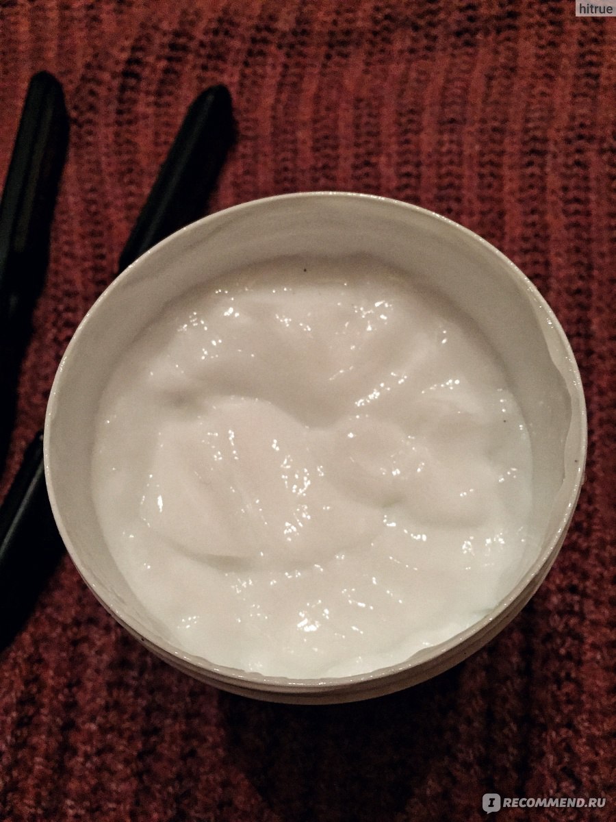Консистенция маски отличная, густая, не "сползает" с волос, но не очень жирная, скорее похожа на густой, гелевый крем.