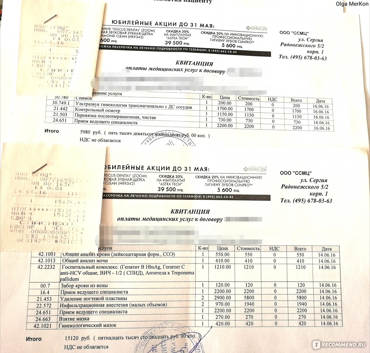 Вот парочка моих чеков для образца.Цены, конечно же, немалые. Но если сравнивать с другими частными клиниками и лабораториями (в Москве), то интервал между ценами не так уж и отличается.