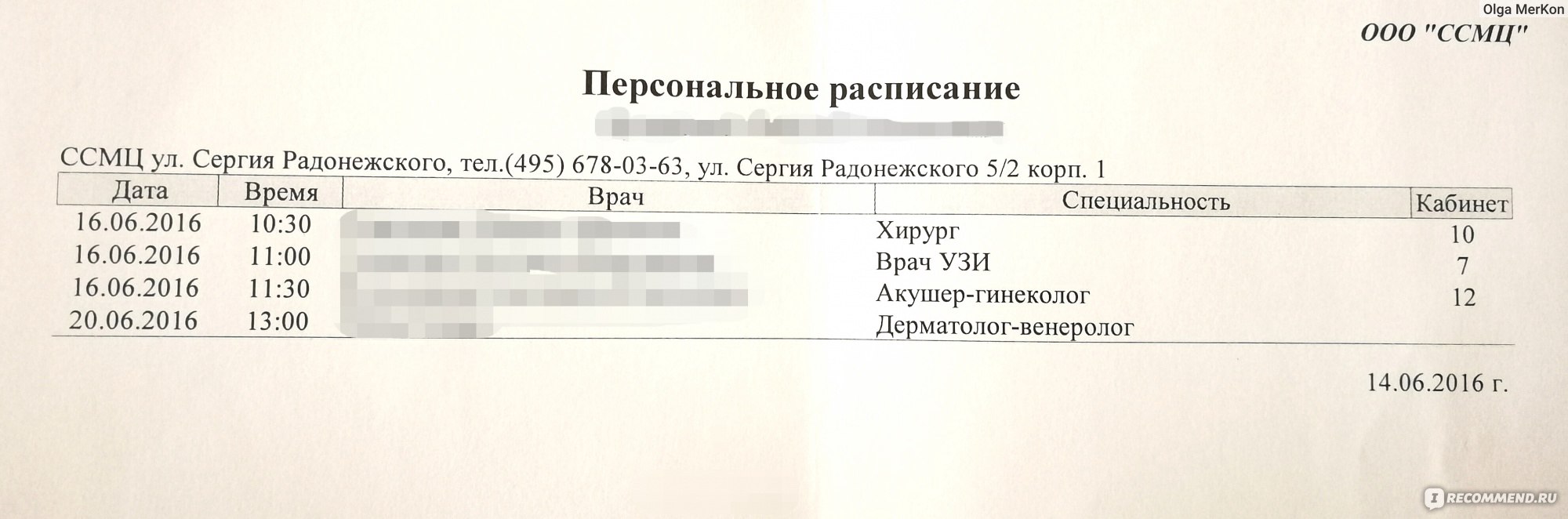 Также на ресепшн выдают расписание пациента на последующие приёмы. Это очень удобно. Так как у меня была запись сразу к нескольким специалистам, а также анализы и иметь расписание на руках удобно.