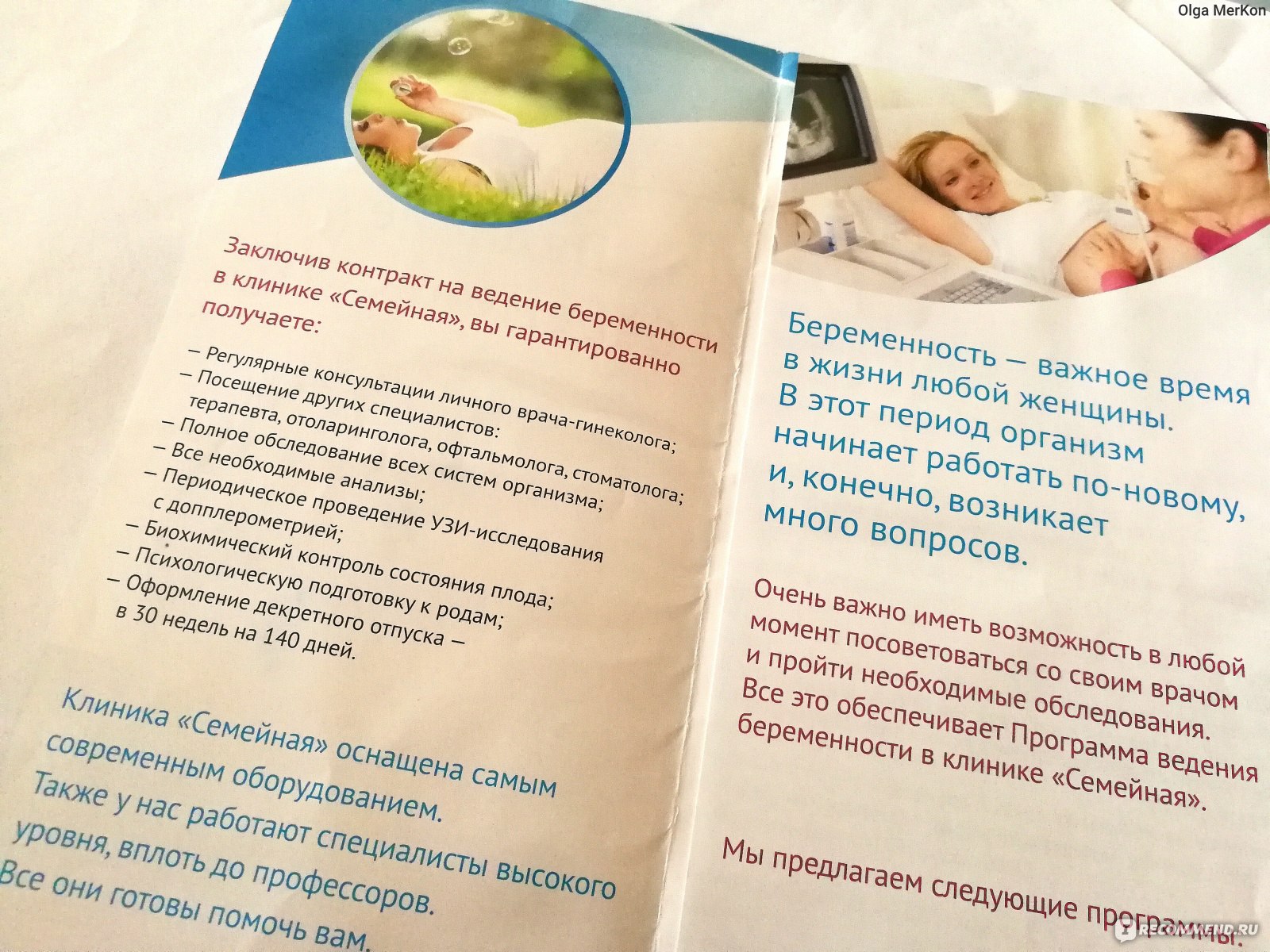 У меня сохранилась также брошюрка с информацией по ведению беременности.У клиники есть возможность положить беременную в стационар при случае необходимости. Но вот роддома в сети клиник "Семейная" нет.