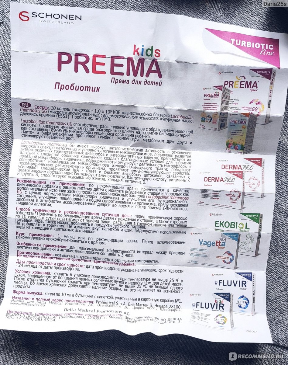 Были у нас проблемы со стулом (частый и жидкий). Назначили нам сдать анализ на дисбактериоз, и выявили дефицит лактобактерий. И нам назначили Према, которая содержит как раз лактобактерии.
